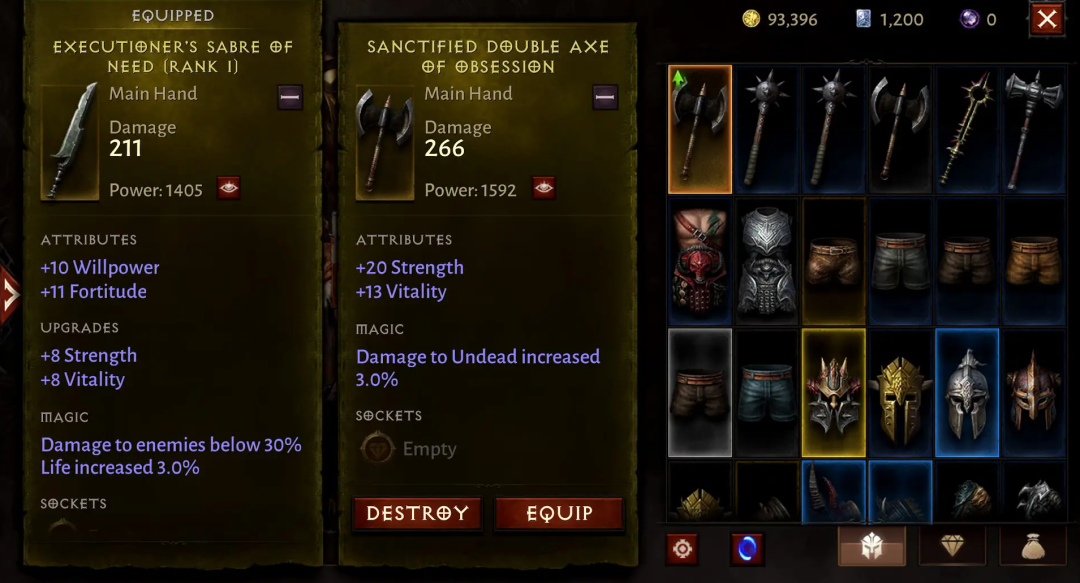 单从“暗黑Like”装备驱动游戏的本质来说,《暗黑破坏神:不朽》毫无疑问是最合格的。这得益于“暗黑破坏神”系列长期以来的数值设计自成体系,成熟且完善。在《暗黑破坏神:不朽》中,职业与装备这两大核心系统被完整的保留继承了下来,而且根据移动端进行了十分高效的优化,掉落的装备拥有着大量的随机词条,传奇装备可以改变职业技能的效果等等。丰富、有趣、有价值的装备保证了“刷刷刷”游戏的可玩性,搭配多样的职业系统给予玩家足够高的自由度,可以根据职业自由构筑自己的build,这才能让玩家拥有一直游玩的动力和乐趣。
