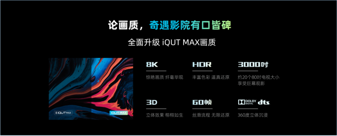 值得一提的是,从奇遇MIX开始,奇遇iQUT未来影院将全新升级至iQUT MAX画质,将支持爱奇艺自主研发HDR视频增强技术——帧琦映画MAX,支持高达8K分辨率、60FPS帧率以及HDR、3D立体效果、AI画质增强,质感拉满。与此同时,奇遇专为6-15岁儿童打造的儿童专区也将同步上线。