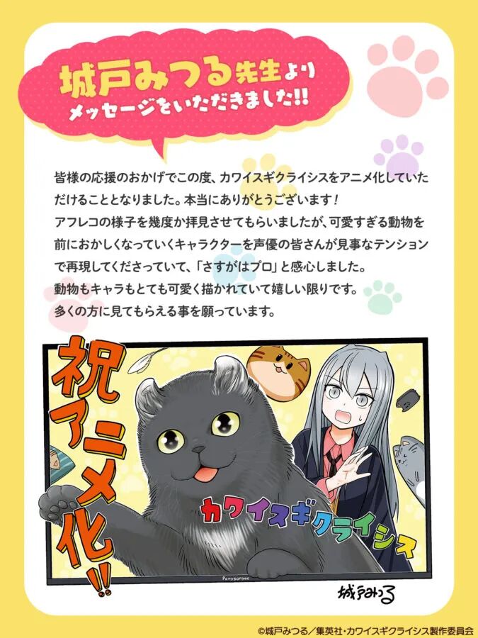 由城戸みつる创作,目前正于集英社月刊漫画杂志《Jump Square》,以及漫画杂志App《少年Jump+》连载的《可爱过头大危机》将于2023 年推出电视动画。