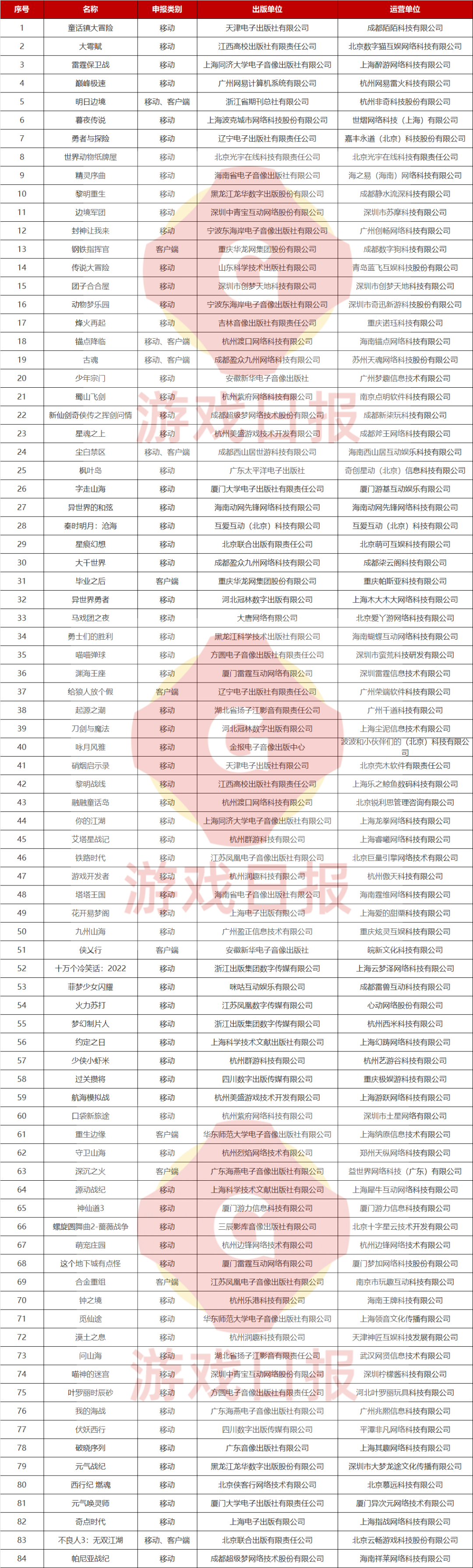 12月28日,国家新闻出版署公布2022年12月国产网络游戏审批结果与2022年首批进口游戏版号审批结果,本次共有84款国产游戏、44款进口游戏过审。