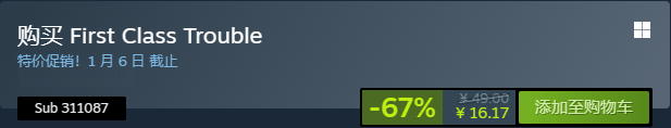 《头等舱危机》今日开启限时促销。本作Steam商店原价49元,史低价16.17元,Steam购 限时冬促史低价再减5元,11.17元即可入库!