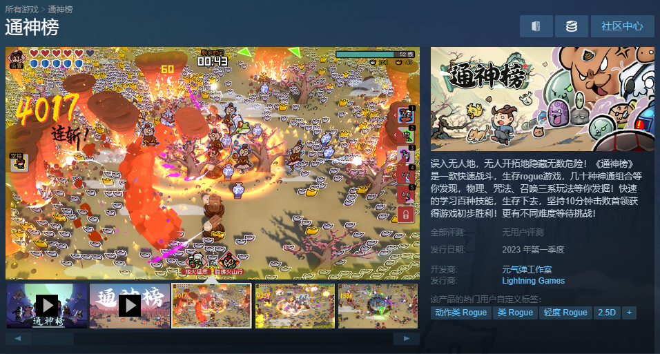 由元气弹工作室制作的国产生存Rogue游戏《通神榜》上架Steam,计划于2023年第一季度发售。