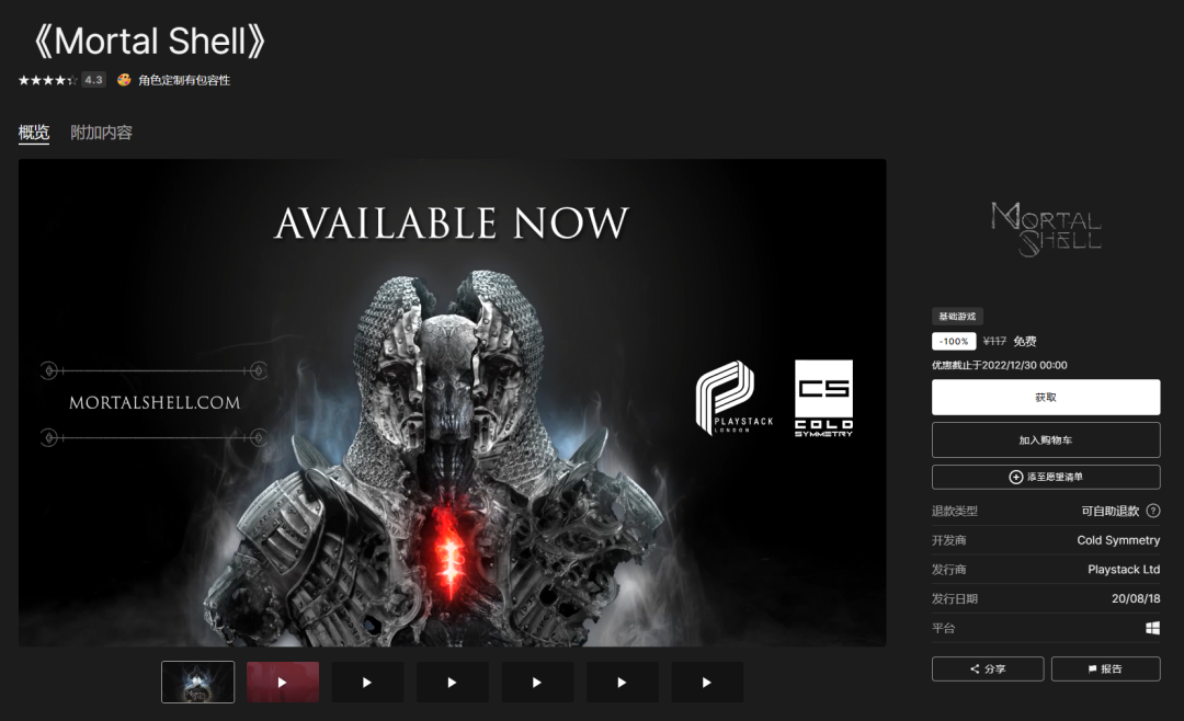 Epic 15天喜加一活动第14天游戏揭晓,《致命躯壳》免费领取!