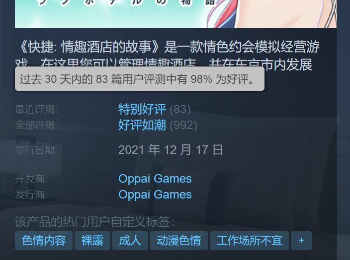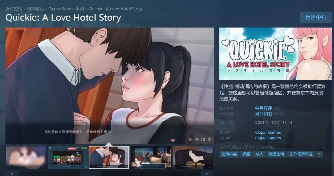 比如这个叫《Quickie: A Love Hotel Story(快捷: 情趣酒店的故事)》的模拟经营游戏,外区打折50块左右。