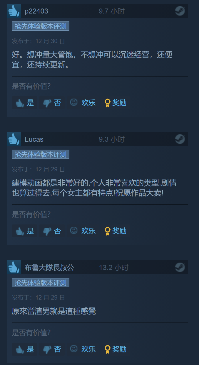 所以哪怕游戏在Steam上只是抢先体验阶段,目前有很多支线和功能设计尚未加入,大部分人体验过后还是给出了98%好评率。