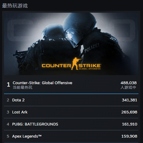 作为V社的看家游戏,《CS:GO》不仅每天都能登顶Steam的最热玩游戏榜单,就连好评也达到了惊人的600万。