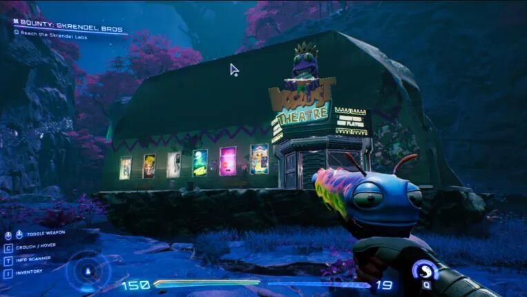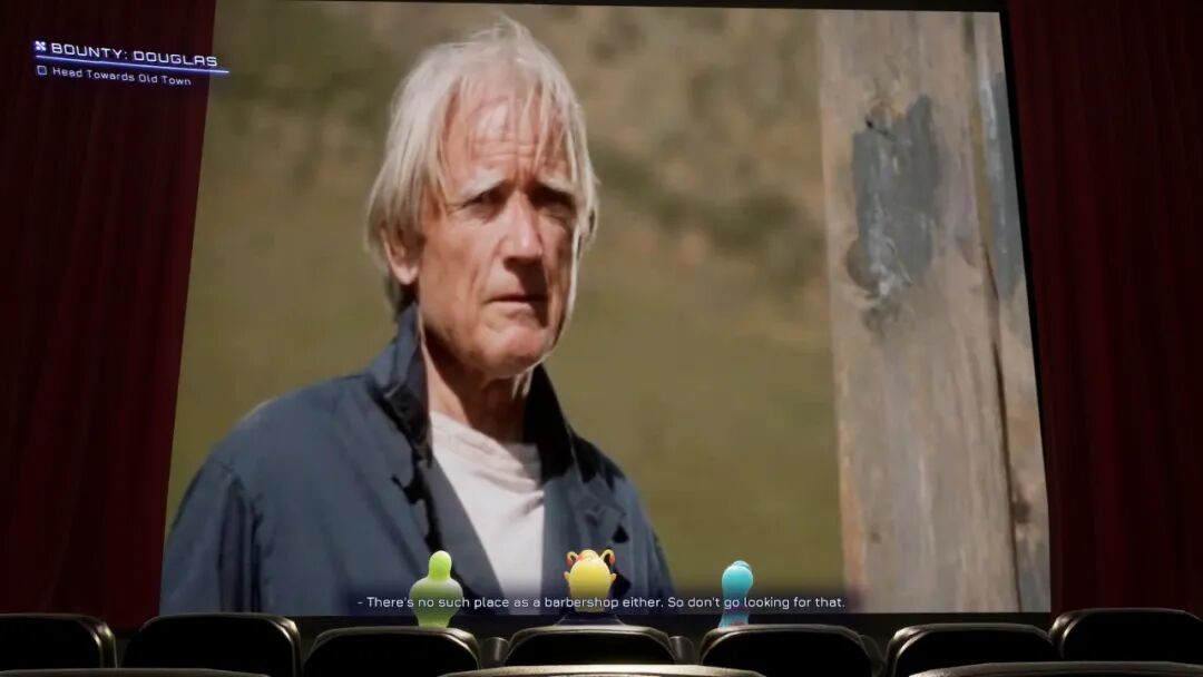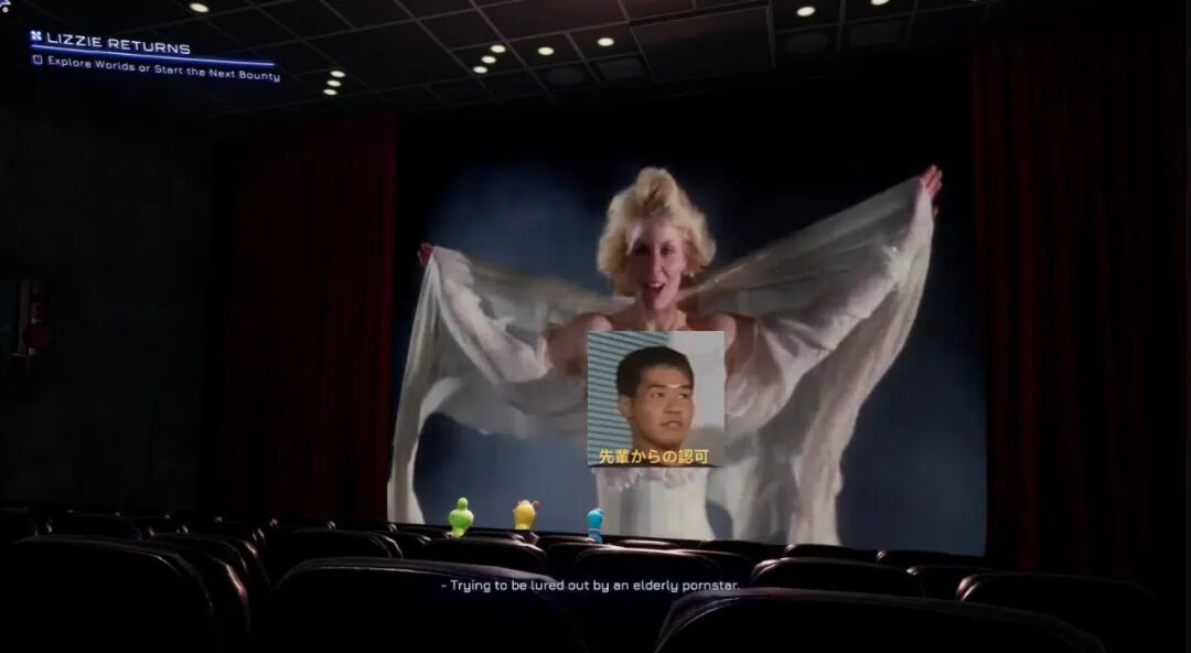 在电视机里,你只能看到这些电影的片段。但在这座电影院里,你是可以看到全片的,而且全程还有几个外星观众陪你一起看,他们会像那些带评论音轨的蓝光碟一样,在几个小时里互相聊天,点评电影剧情;你的枪还会对他们说的话吐槽。