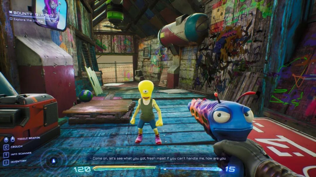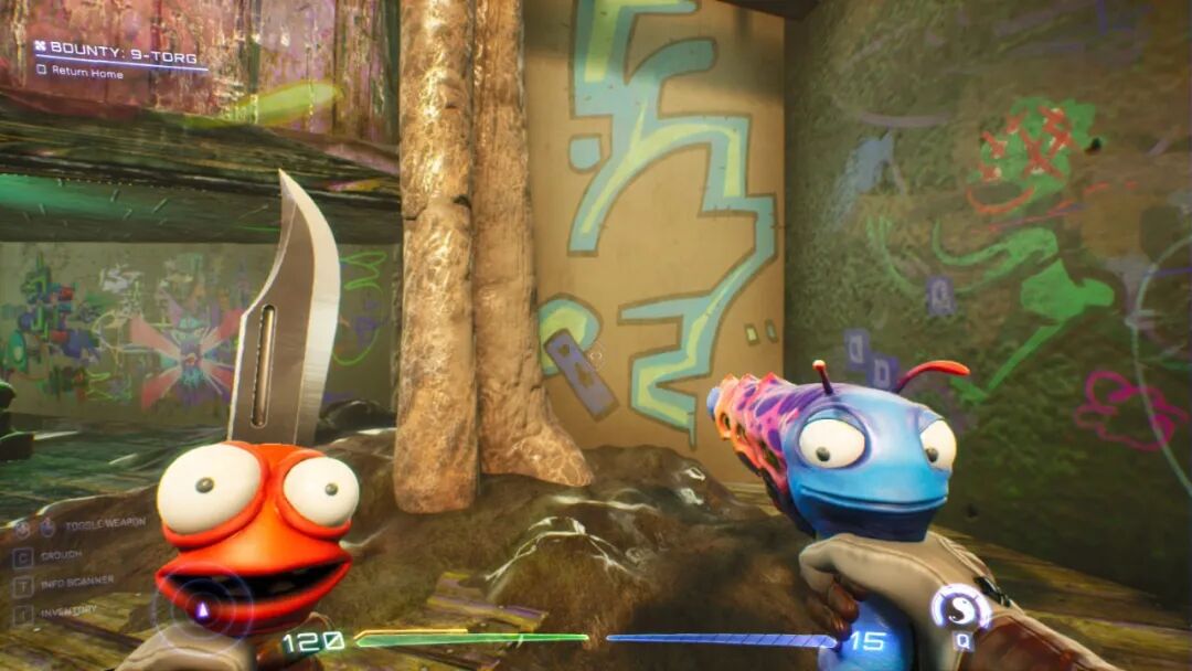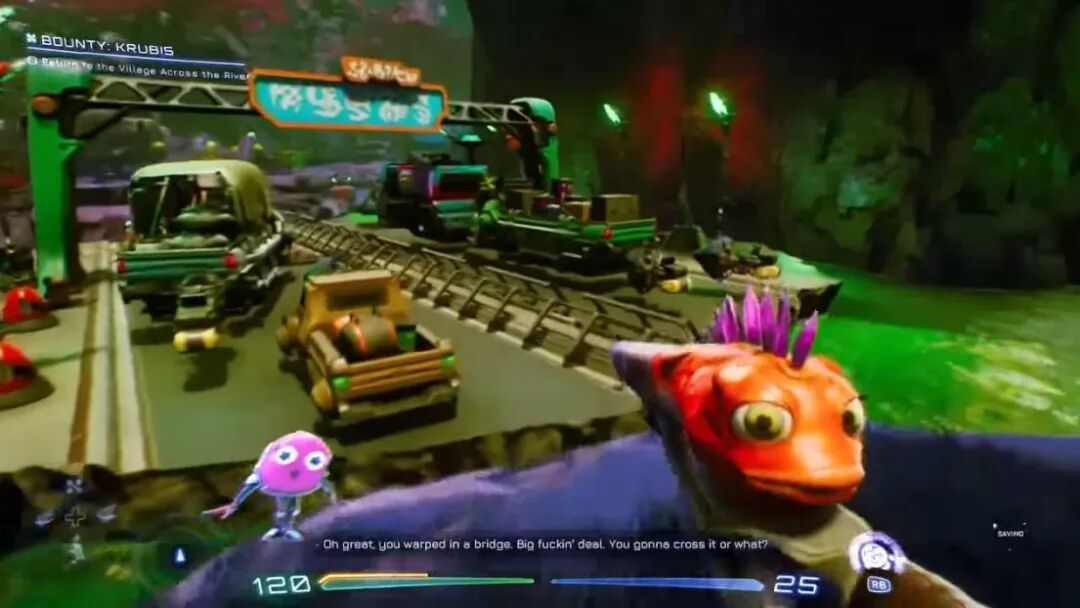 游戏里,你扮演一个拯救人类的英雄,与外星同伴联手对抗星际黑帮——剧情框架老套得掉牙,但实际体验完全不是这么回事,这游戏在各方面都极为天马行空,把想象力当成拳击袋打得到处飞。