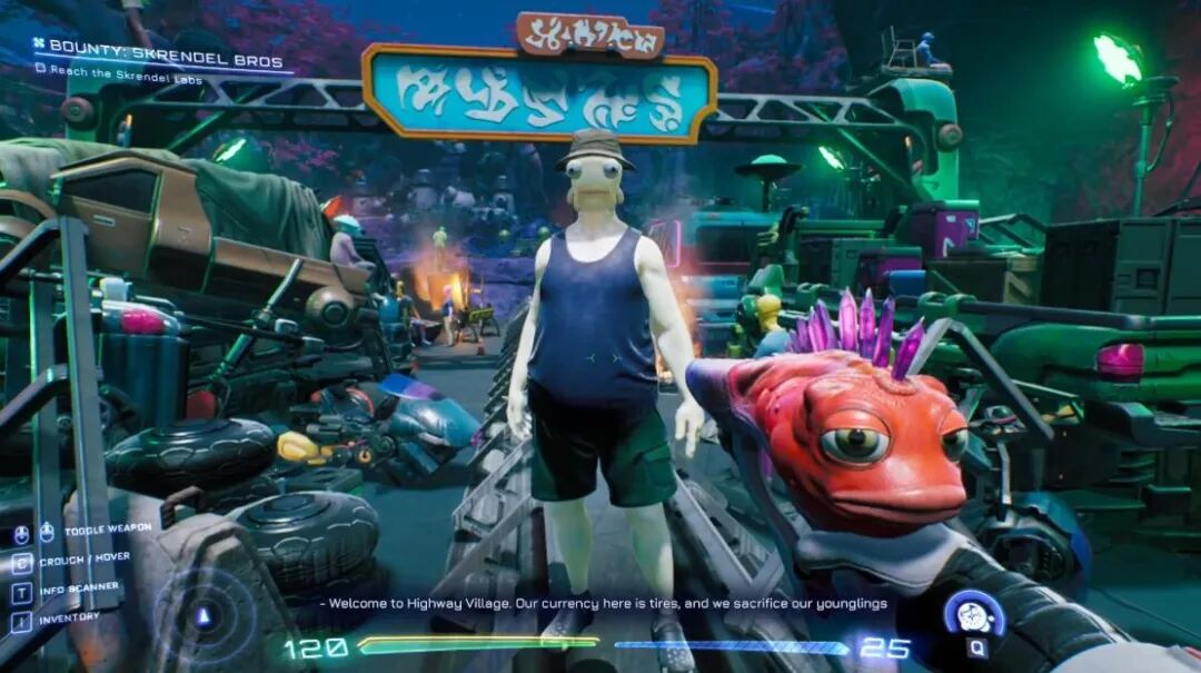 再到后面,这段桥竟然变成了一个废土风的小堡垒,里面的人已经在重建社会秩序了。他们有自己的货币、自己的外交官,以及自己的社会运转逻辑,还正在研究工作福利机制——所有这一切,都是因为你传了段桥在外星球上。