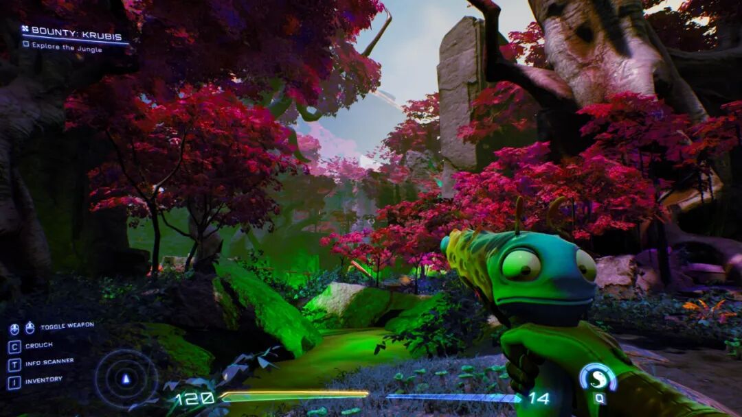 况且,它虽然10小时就能通关,但还真没多少重复内容,你去的地方基本都是新的。所以全程,你会看到各种风格迥异的外星景色,很多地方只出现一两次,但以独立游戏的眼光来看,还是做得很用心。