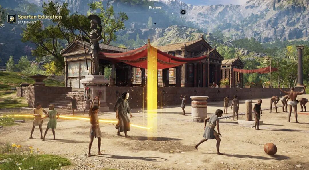 当然,如果打开的是《发现之旅:古希腊》(Discovery Tour: Ancient Greece),那么从雅典到比雷埃夫斯,所有城市、人物的背景历史都像画卷一般在玩家面前展开。基于元信息提供的史实信息或创作信息,真实和虚构的边界被勾勒而出。