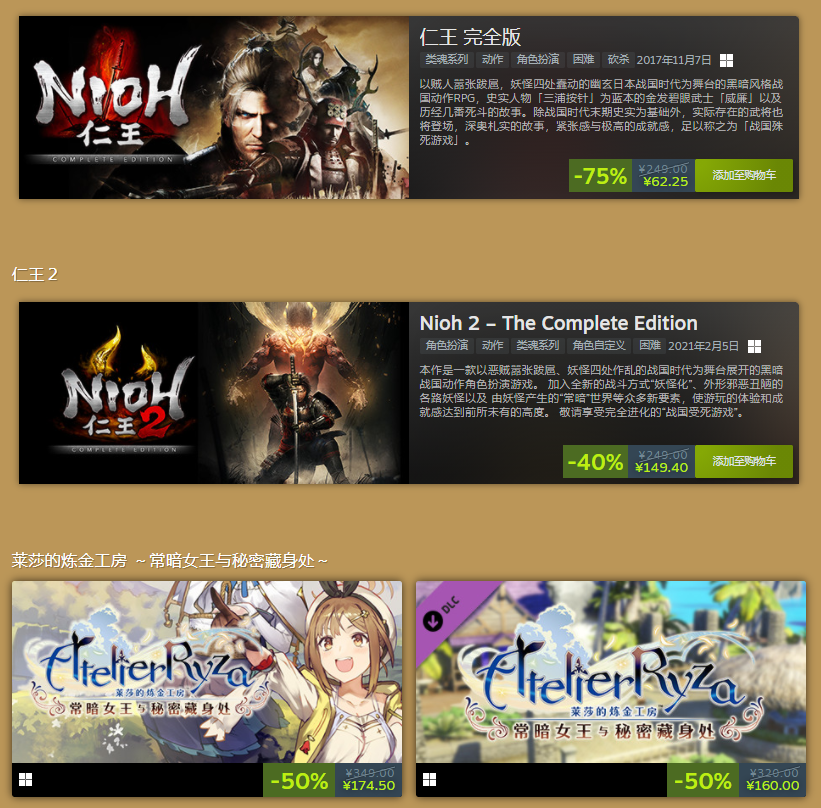 《仁王 完全版》——62.25元(75%OFF,史低)