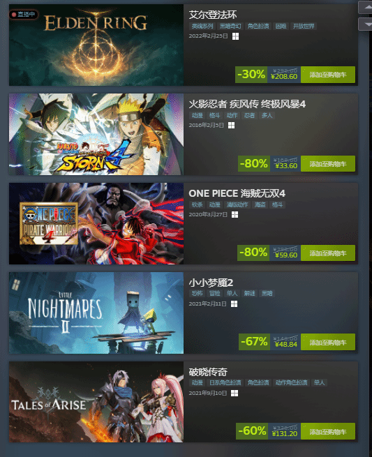 万代南梦宫Steam冬促页面已上线,TGA年度游戏《艾尔登法环》7折208.6元史低,感兴趣的玩家不要错过。