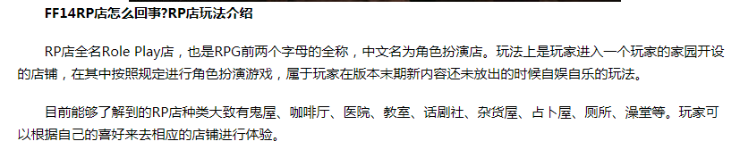 FF14的RP店非常出名