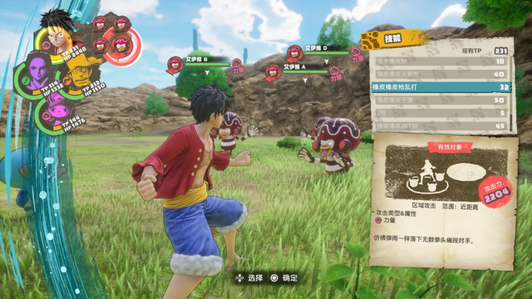 而为了服务这套“区域”战斗系统,《海贼王:时光旅诗》还为角色的技能设置了各自的“区域”效果。