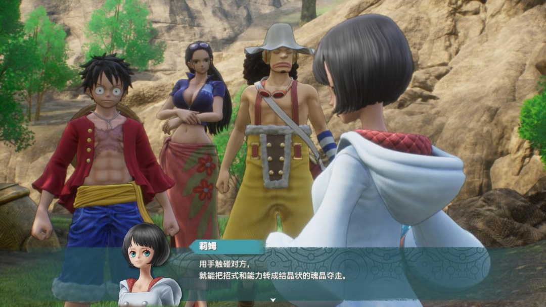 简单寻回失散的伙伴们后,游戏围绕着探索岛屿展开了一段不算短的教学内容。在这个过程中,草帽海贼团的各位成员都有着高达40级的初始等级,技能组也相当完备。路飞一行早就是迈入了新世界的大海贼团,有这样的实力也算理所应当。