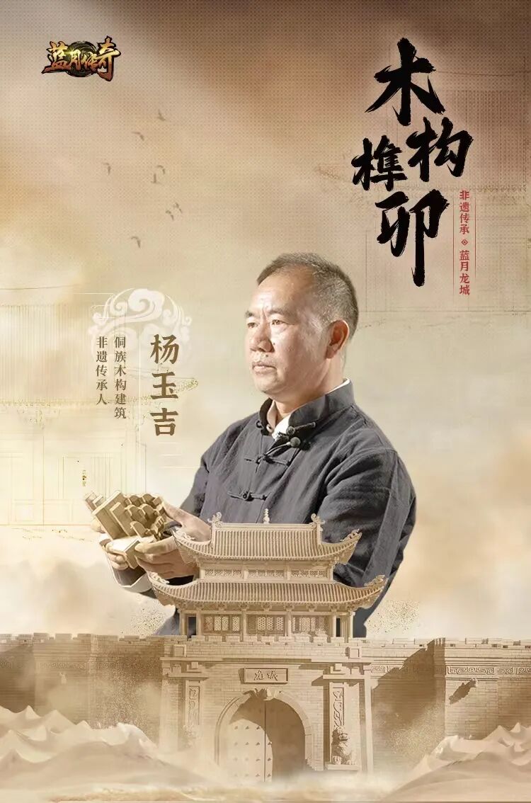 携匠心筑经典,《蓝月传奇》邀请到了国家非物质文化遗产项目“侗族木构建筑”非遗传承人杨玉吉老师参与“龙城”的构筑。设计阶段,杨玉吉老师阅遍了很多中国古建筑构造方式,最终选择用抬梁式重檐歇山顶搭建整个城楼,以斗拱为支撑,将龙城整体撑起,呈现出极具延展性的优美屋檐。![]()