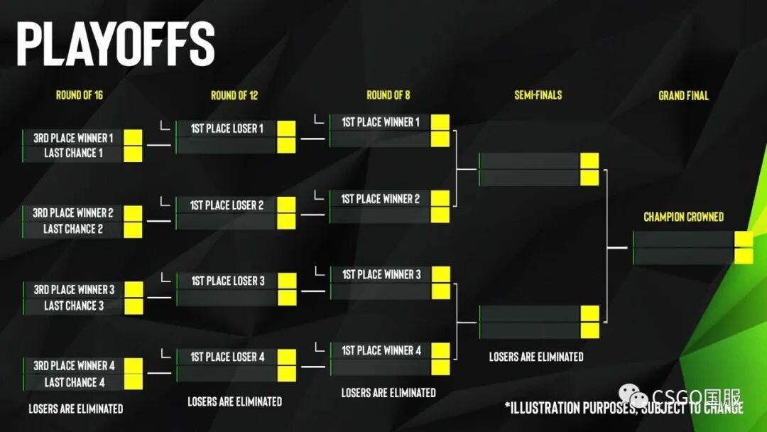接下来说下EPL赛事,EPL系列赛事将扩军至32支战队,并引入新赛制。32支队分为4组,小组赛从单循环改为双败淘汰制,每组前4战队晋级季后赛。小组第1晋级8强,小组第2晋级12强,小组3、4名晋级16强,最终决出冠军。