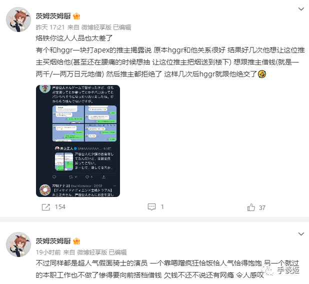 另外还有网友表示,户谷公人就是这样的人,他还会跟别人借钱买烟抽,别人不借,后来户谷就不理他了。