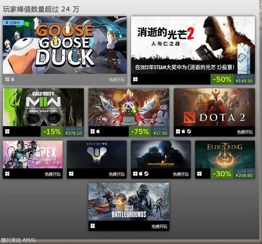 Valve公布了Steam 2022年度最佳榜,最畅销游戏、新品、最热玩游戏、抢鲜体验毕业作品、Steam Deck、最佳VR游戏这几个分项。
