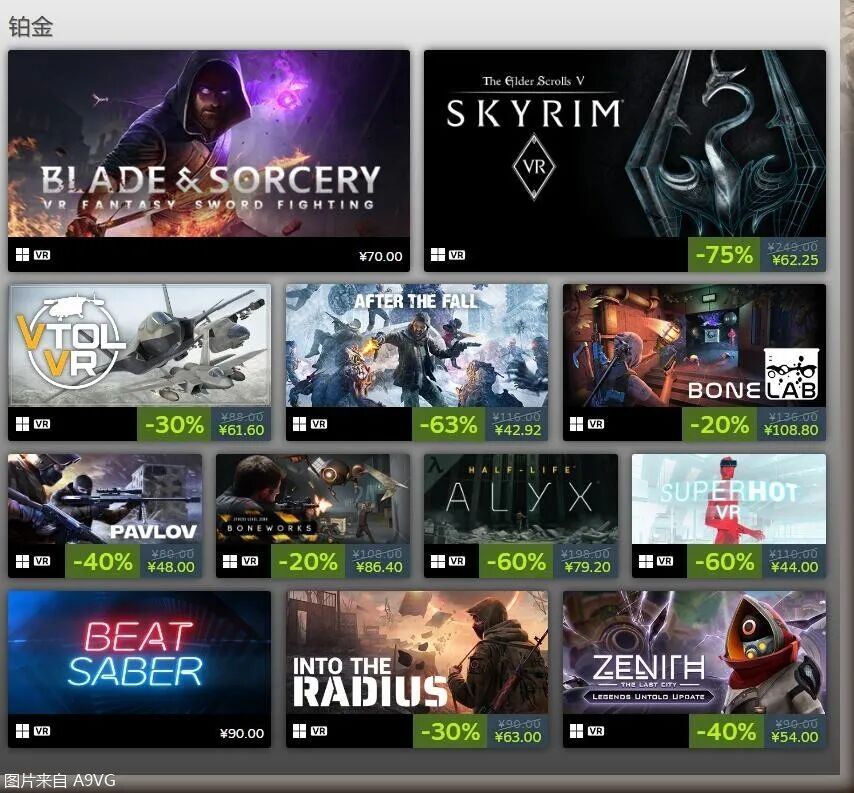 此榜单以VR游戏为目标,以游戏在2022年的毛收入为衡量标准。游戏游戏会有补充式的VR模式,所以本榜单限定为以VR专用的游戏为目标: