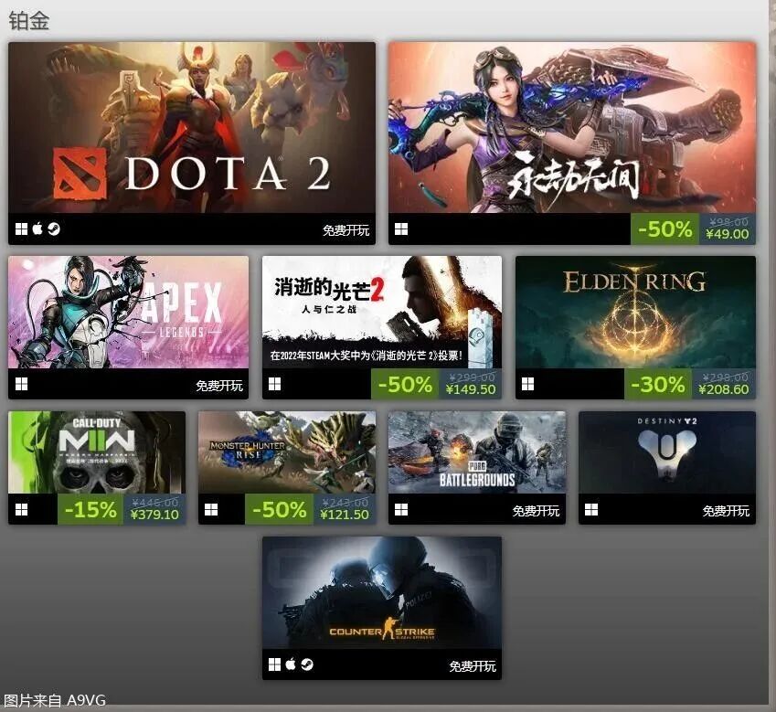 这个榜单以通过了Steam Deck验证的游戏为目标,衡量标准为2022年每日活跃玩家数: