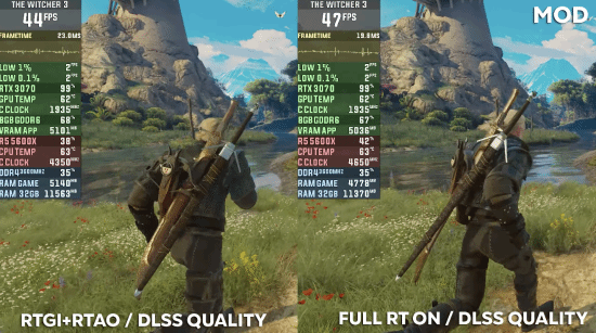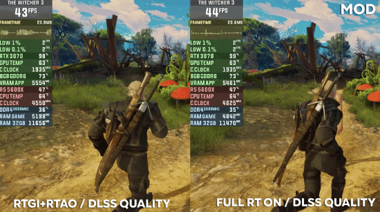 正如很多玩家所遇到的那样,《巫师3》次世代版在刚发布时存在一些严重的CPU优化问题。当游戏开启光追时,这些问题就会出现,很难在光追效果下稳定60帧运行。针对此问题,有玩家做出的专门的MOD,希望在开启光追时保持帧数稳定。但从实际效果来看,在模型较复杂密集的场景中,这个MOD带来的提升微乎其微。对此,Dsogaming表示,目前在光追画质下稳定60帧的唯一方法只能是使用40系显卡的DLSS3功能。他们使用 RTX4090在2K分辨率下的测试对比结果如下,内存为16GB DDR4,CPU为Intel i9 9900K。(下方每组中的第二张为开启之后的效果)更多平台的游戏攻略、优惠活动等可扫描下方对应公众号的二维码进行关注噢(PS:各种大作免费送的活动千万不要错过