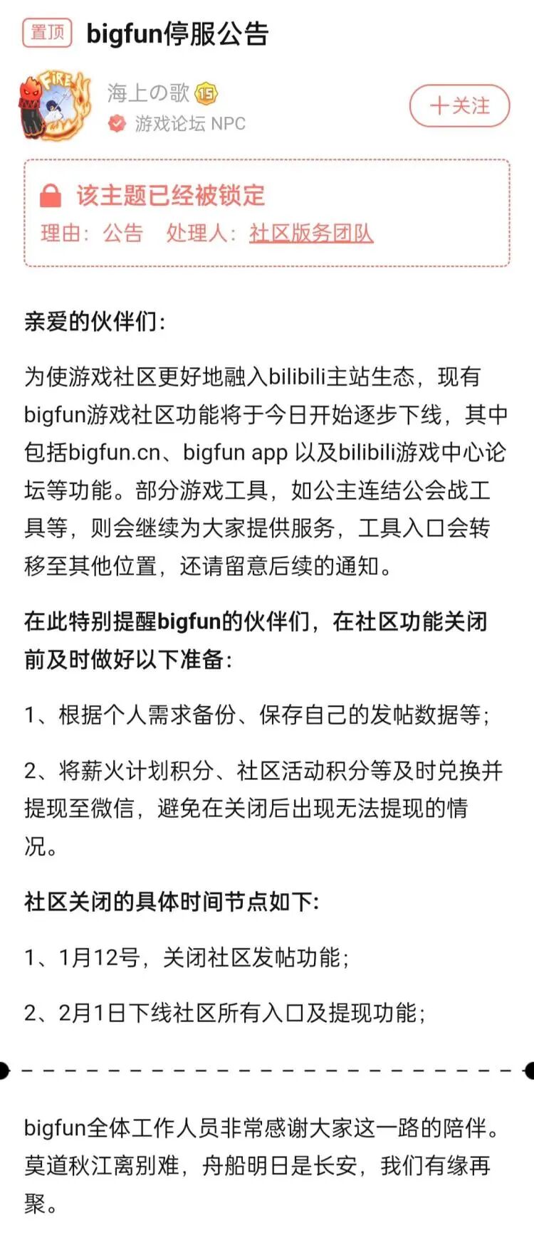 bigfun 预计将在 1月12日 关闭社区发帖功能;2月1日下线社区所有入口及提现功能。