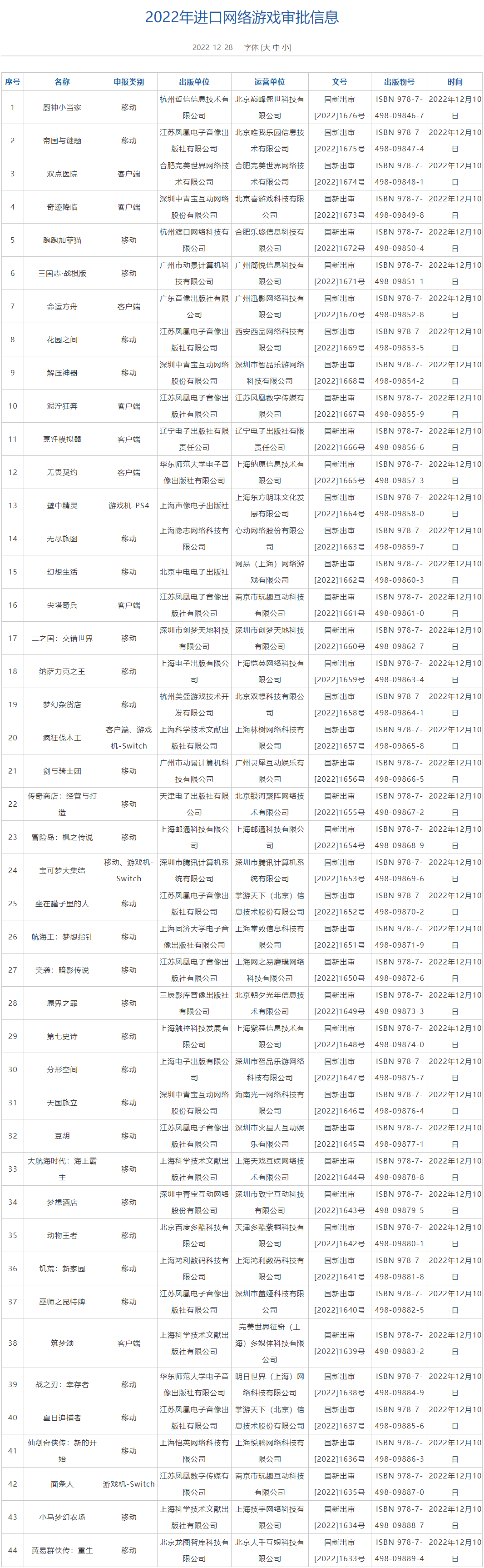 值得一提的是,本次除了国内游戏版号之外,久未消息的“进口游戏版号”也在今日一起下发。本次共下发45个进口游戏版号,其中包括9个客户端版号,4个主机版号,32个移动端版号。