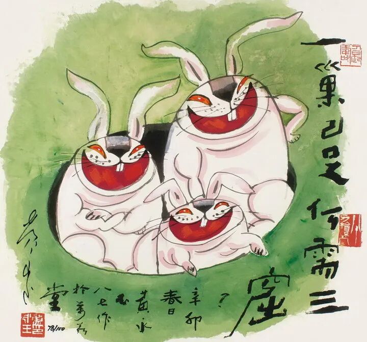 这次的小版票所使用的插画,实则是黄永玉上个辛卯年时绘制的一副幽默画的改版,原画还配有一段图注:“一巢已足,何须三窟。”