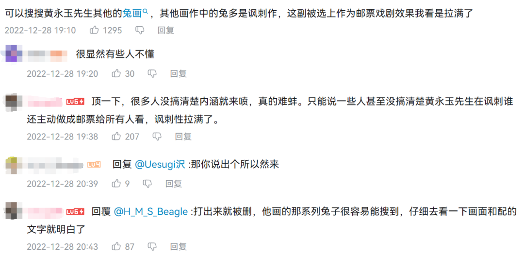 他们向其他人解释这是黄永玉惯用的幽默画画风,绝不是刻意丑化或偷懒之作,要说这样的画风不适合拿来做生肖邮票,那也是选中了这套画的中国邮政的问题。