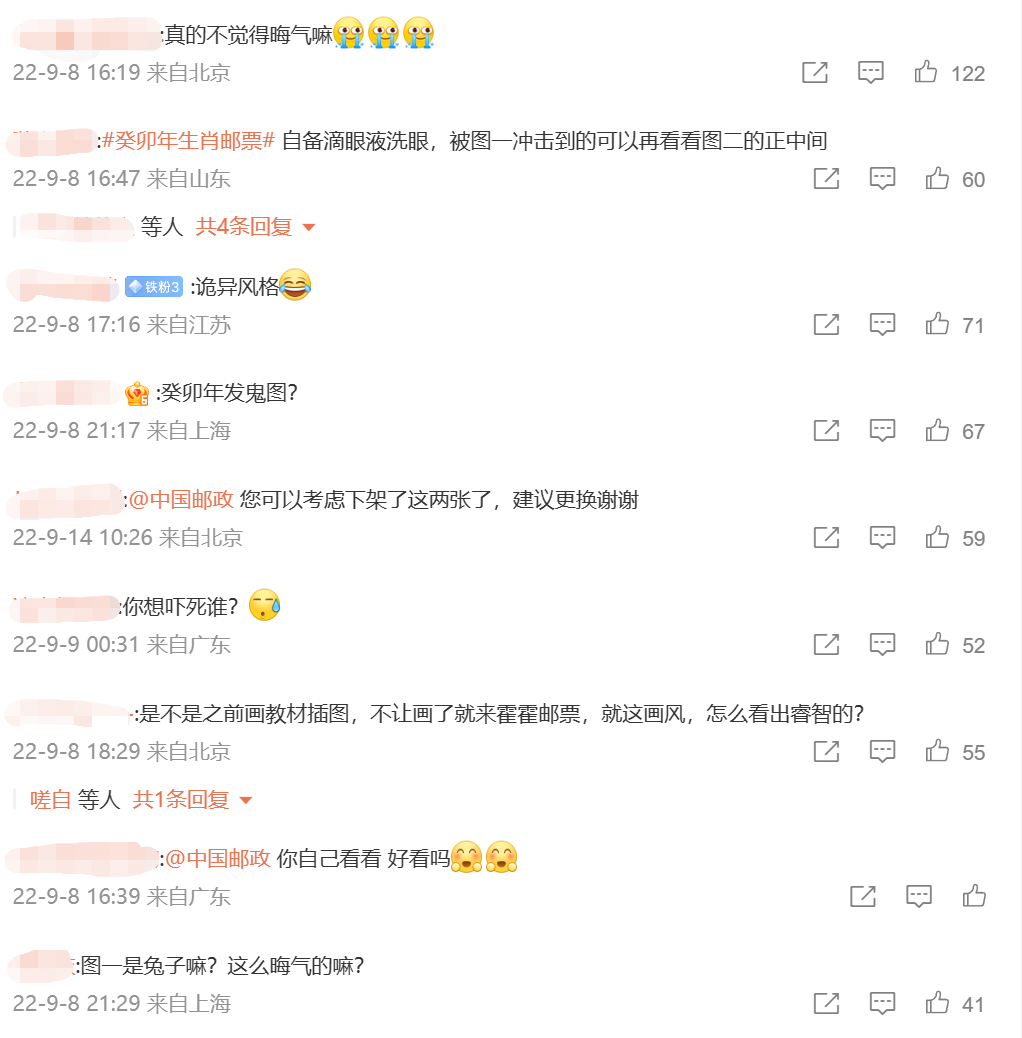 尽管算得上是“好事不出门,坏事传千里”,但蓝兔子在“出圈”之后,反倒给今年的生肖邮票带来了一些新气象。