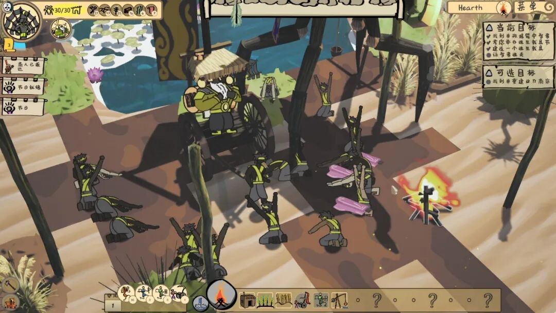 整个游戏的经营玩法,以两到三个技术灵感,搭配一个文化灵感,为基本节奏,运转起来时,就像某种原始的节气规律。智者先带来房屋,使人们不再迁徙。随后又发明禾黍,令人民果腹繁衍。安居乐业的人民庆祝丰收,向智者参拜献祭,于是就有了节日与文化。