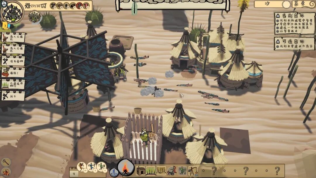 戈壁平原的大风会掀开屋顶的茅草,旱季的烈日将成片的建筑付之一炬。还有一些闻所未闻的庞然巨物,光是从部落旁经过就会造成可观的破坏。而有时,一些极端的自然环境又是有益的,比如暴雨会冲垮脆弱的居所,却也能滋长领地中的木材、作物。